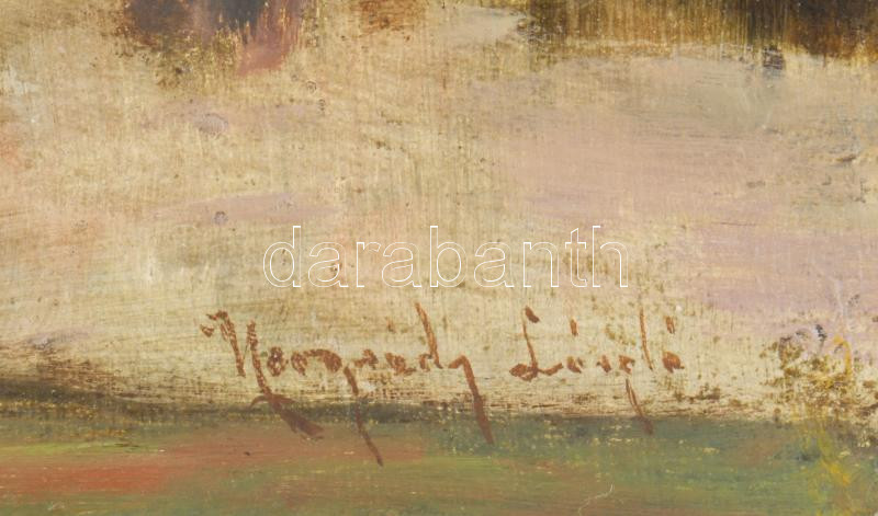 Nagy I jelzéssel: Kaszáló. Olaj, farost. 50×37 cm.