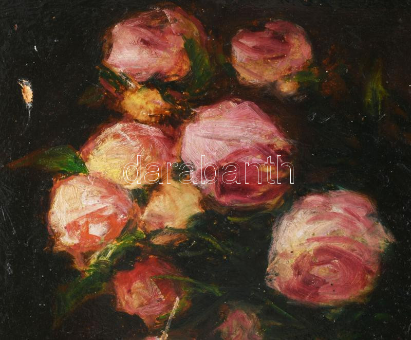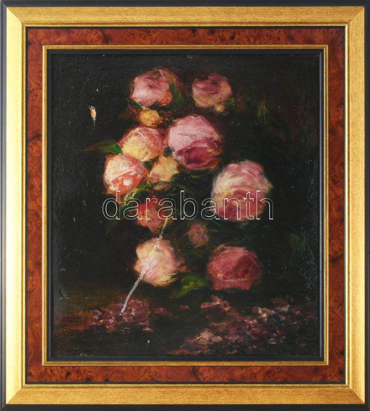 Mund Ágoston jelzéssel: Virágok. Olaj, karton. Felületi sérülésekkel. Dekoratív keretben. 35,5x32,5 cm