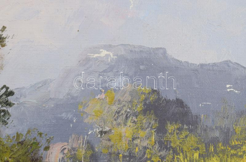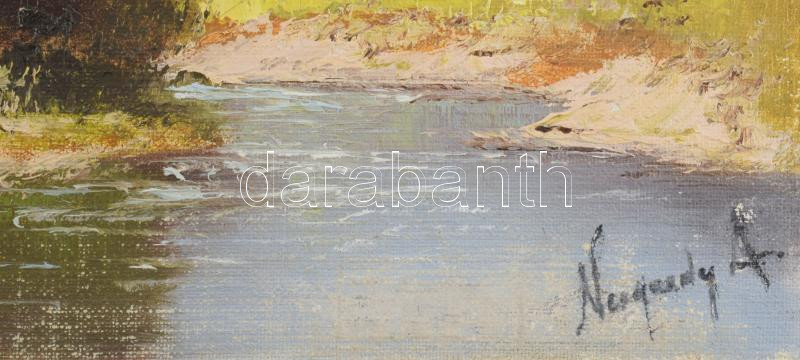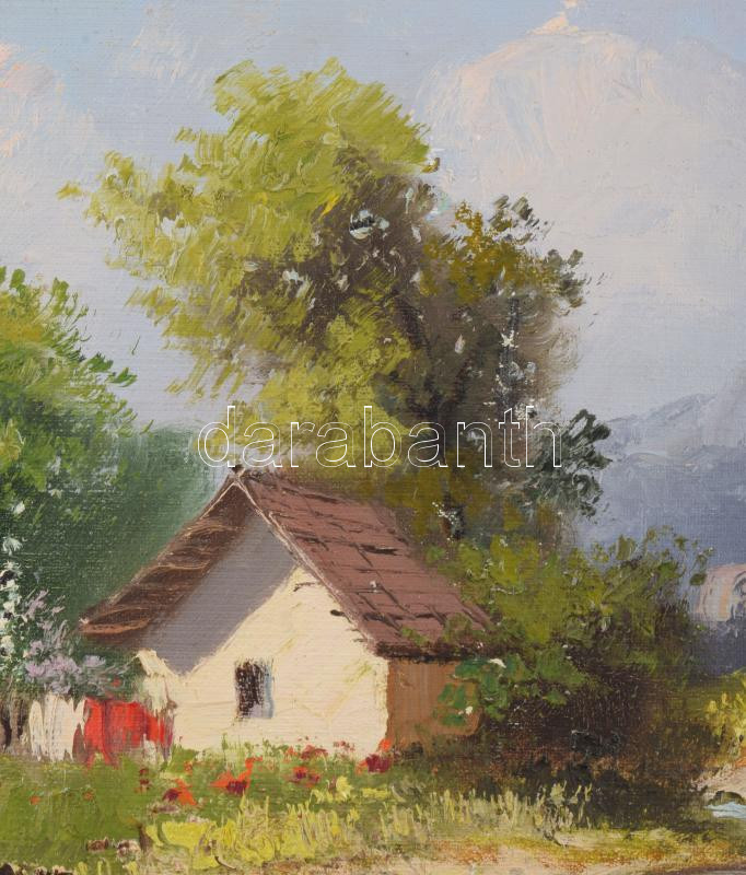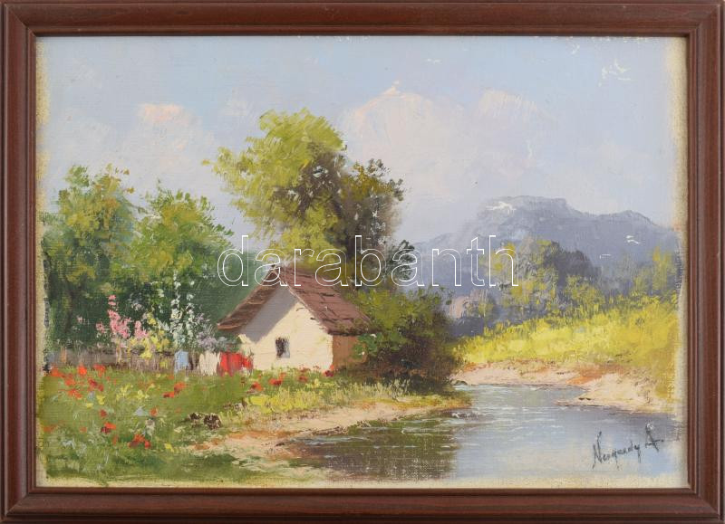 Neogrády A jelzéssel: Napsütötte tanya. Olaj, vászon, kartonon. Fakeretben, 20×29,5 cm
