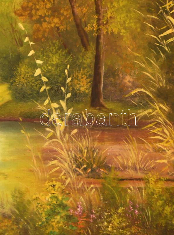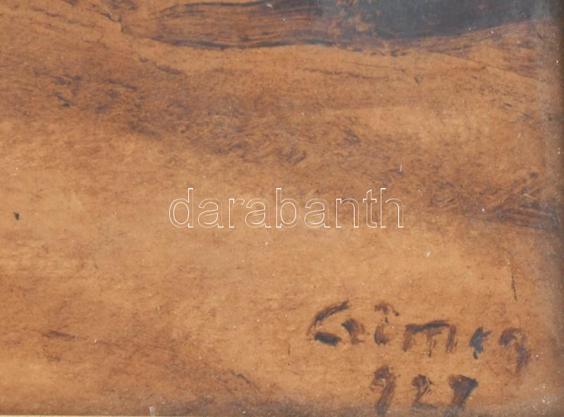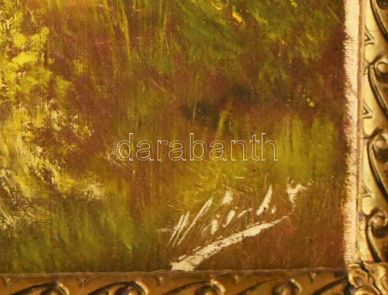 Olvashatatlan jelzéssel: Hazafelé. Olaj, vászon. Dekoratív, sérült fakeretben. 25x35 cm