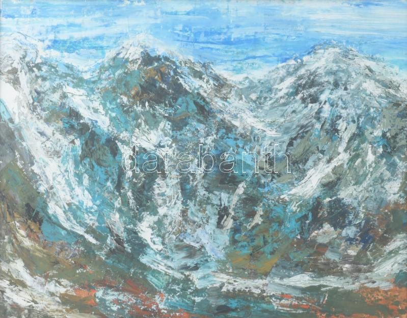 Olvashatatlan jelzéssel: Hegyvidéki táj. Olaj, papír. Dekoratív, üvegezett fakeretben, 28,5x38 cm