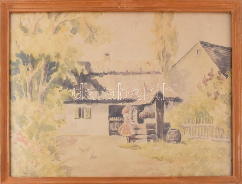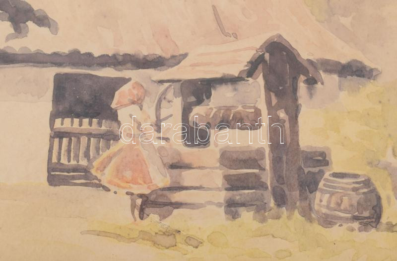 Z Zalán E jelzéssel (XX. sz.): Lány a kútnál. Akvarell, papír. Üvegezett fakeretben, 33×50 cm