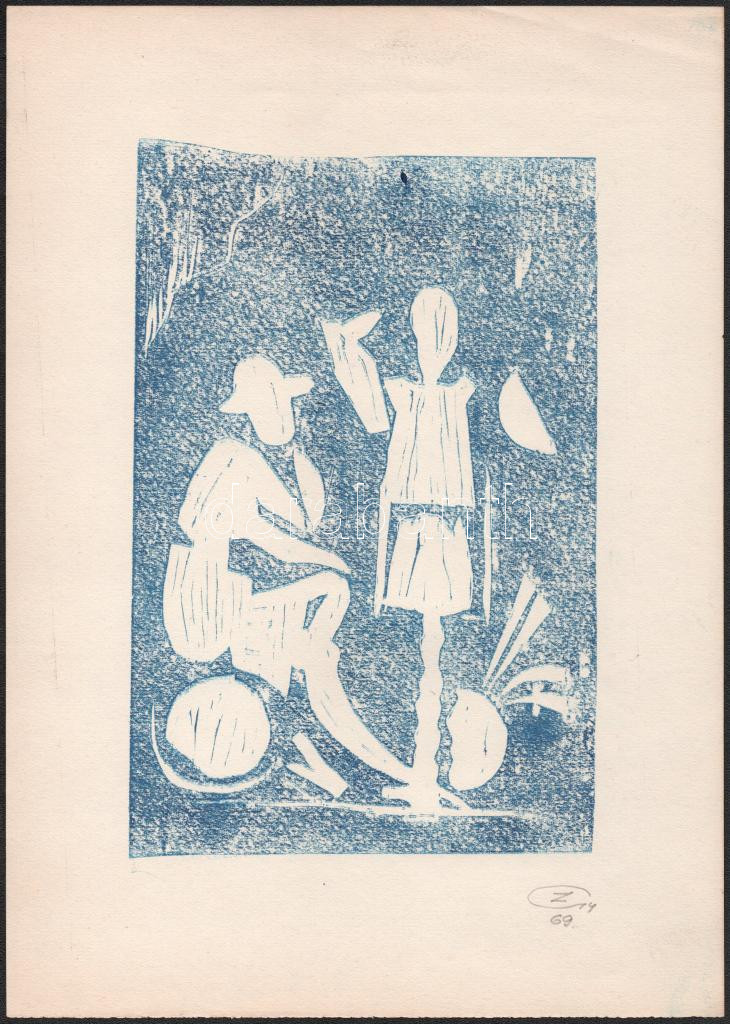 Z jelzéssel: Alakok, 1969. Monotípia, papír. 21x14 cm