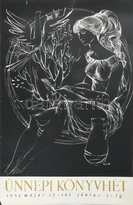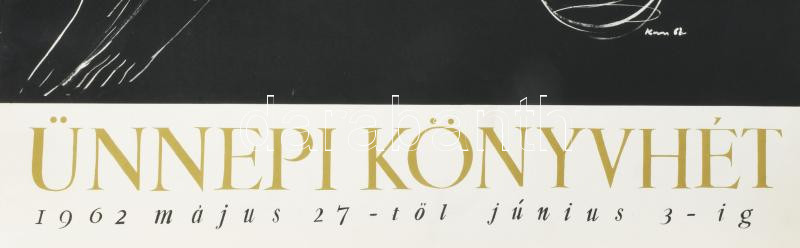 Kass János (1927-2010): Ünnepi könyvhét, 1962, plakát, papír, jelzett a plakáton, Bp., Offset-ny., lapszéli szakadásokkal, 82x57 cm
