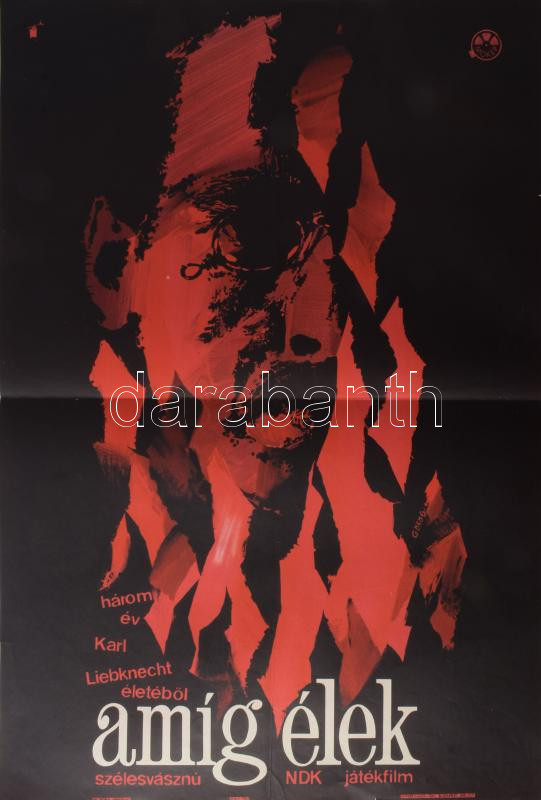 Görög Lajos (1927-1995): Amíg élek, 1966. Filmplakát, ofszet, papír, jelzett a plakáton, Offset Nyomda, 58,5x38,5 cm. Hajtásnyomokkal, apró lapszéli szakadásokkal.
