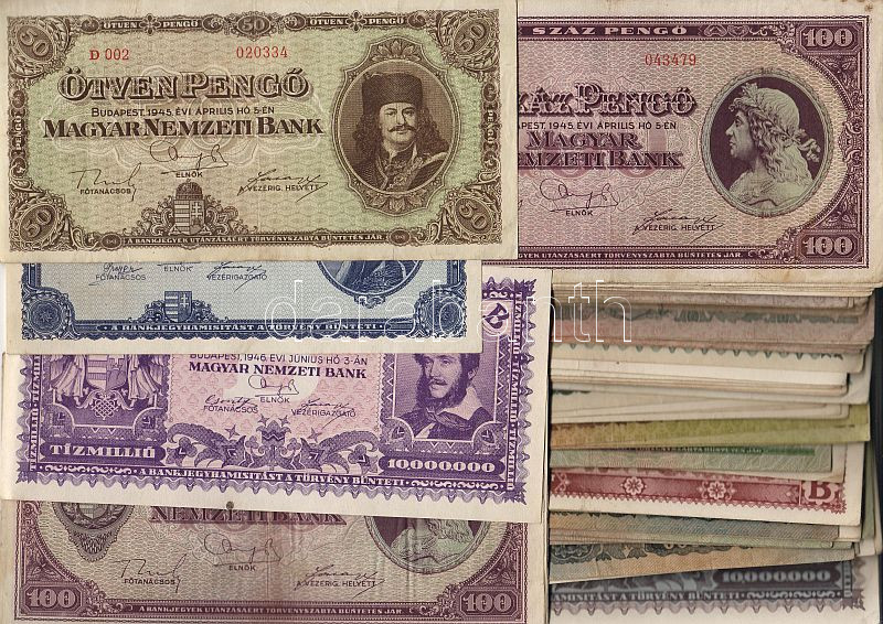 Beschreibung: 107db "pengő" bankjegy 24 klf jobbakkal, elcsúszásokkal, stb. T:II