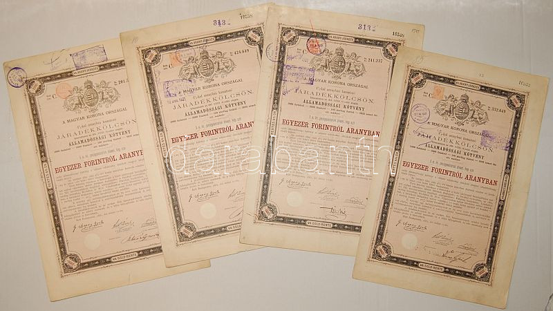 1876.Ausztria 200G (3x) + 1000G + Magyarország 1000Ft Járadékkölcsön ... https://www.darabanth.com/de/53-Fernauktion/53.0/Numismatik/~217/1876Ausztria-200G-3x-plus-1000G-plus-Magyarorszag-1000Ft-Jaradekkolcson-4x-klf-szignettakkal-~II103893
