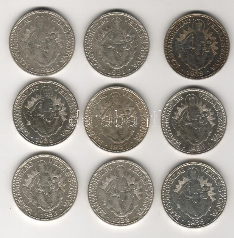 1929-39. 2P Ag teljes sor 1929,1932,1933 T:2/2+, 1931 T:2, 1935 T:2+, ... https://www.darabanth.com/de/53-Fernauktion/53.0/Numismatik/~217/1929-39-2P-Ag-teljes-sor-1929-1932-1933-T22plus-1931-T2-1935-T2plus-1936-T2-1937-1939-1939-T12~II103972