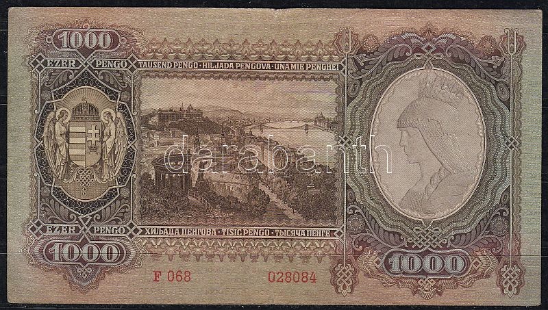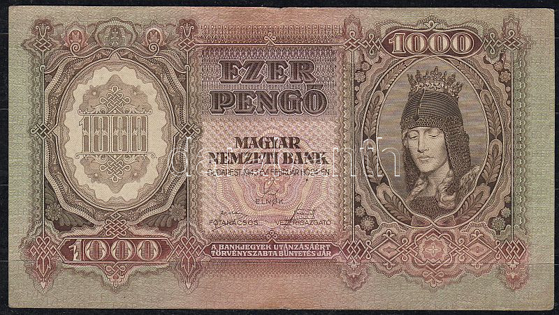 1943. 1000P "Szálasi" előlapi nyomat erősen felfelé csúszva! T:II https://www.darabanth.com/de/53-Fernauktion/53.0/Numismatik/~217/1943-1000P-Szalasi-elolapi-nyomat-erosen-felfele-csuszva-TII~II103549