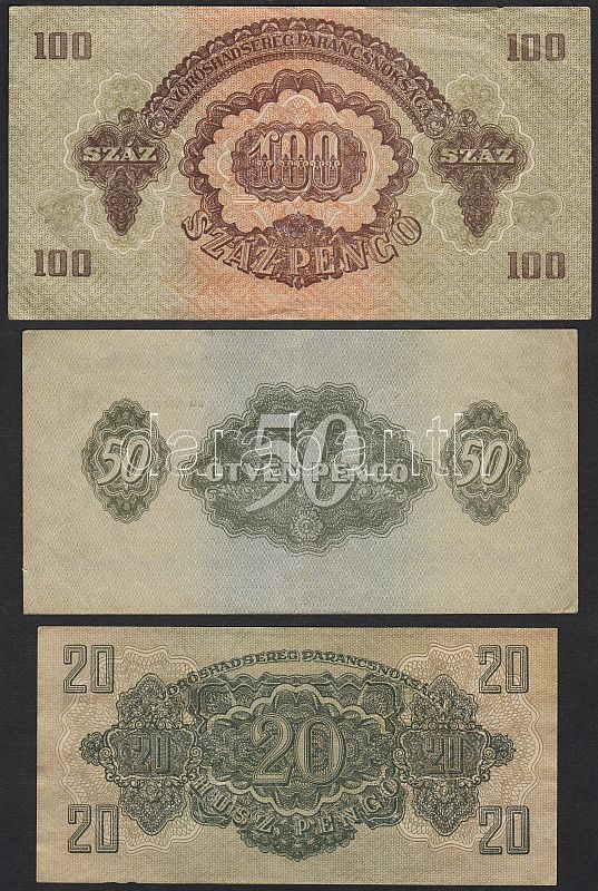 1944. "V.H." 1P függőleges alapnyomat, hátoldali képnyomat kisebb!, 5P... https://www.darabanth.com/de/53-Fernauktion/53.0/Numismatik/~217/1944-VH-1P-fuggoleges-alapnyomat-hatoldali-kepnyomat-kisebb-5P-10P-20P-2-klf-meretben~II103768
