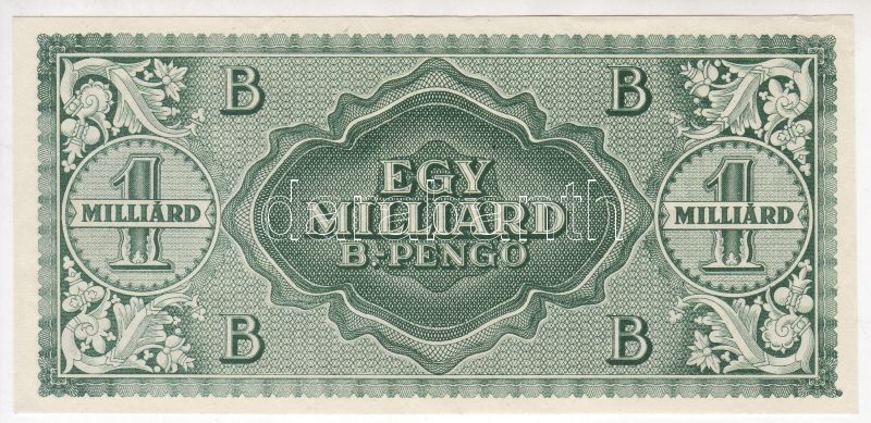 1946. 1000.000.000B.-pengő (1 milliárd) "zöld" papírhibával zöld nyom... https://www.darabanth.com/de/53-Fernauktion/53.0/Numismatik/~217/1946-1000000000B-pengo-1-milliard-zold-papirhibaval-zold-nyomdafestekkel-TI~II103066