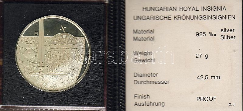 1978. "Koronázási jelvények" Ag 27g tanúsítvánnyal, dísztokban T:PP https://www.darabanth.com/de/53-Fernauktion/53.0/Numismatik/~217/1978-Koronazasi-jelvenyek-Ag-27g-tanusitvannyal-disztokban-TPP~II103821