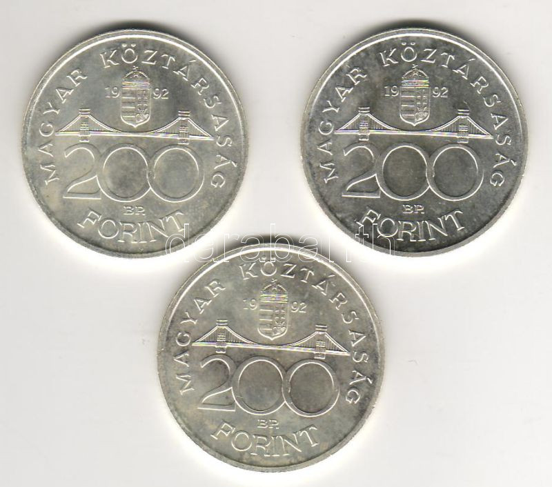 1992. 200Ft Ag "MNB" (3x) T:2 https://www.darabanth.com/de/53-Fernauktion/53.0/Numismatik/~217/1992-200Ft-Ag-MNB-3x-T2~II103078
