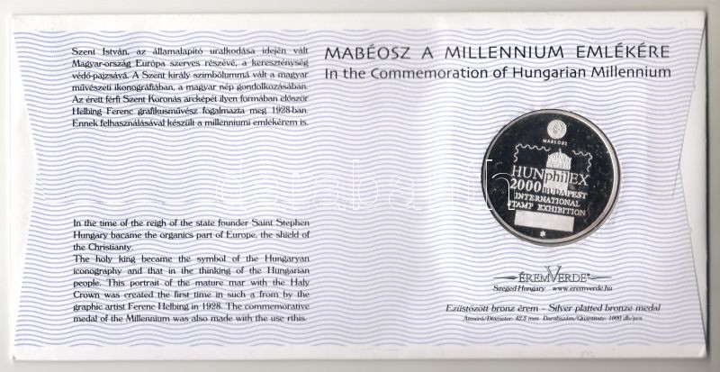 2000. "Hunfilex-Államalapítás" ezüstözött Br bélyeges borítékon T:PP C... https://www.darabanth.com/de/53-Fernauktion/53.0/Numismatik/~217/2000-Hunfilex-Allamalapitas-ezustozott-Br-belyeges-boritekon-TPP-Csak-1000db-R~II103542