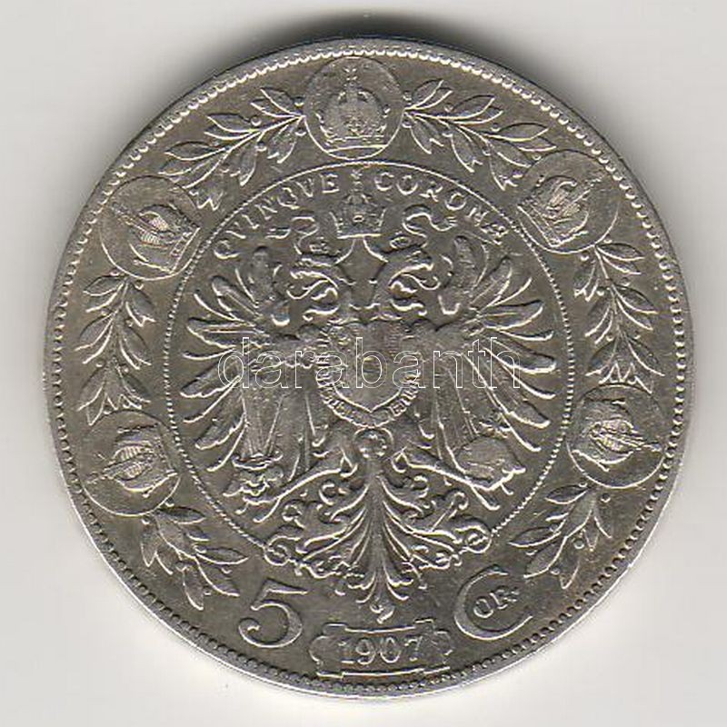 Ausztria 1907. 5K Ag T:2/2- https://www.darabanth.com/de/53-Fernauktion/53.0/Numismatik/~217/Ausztria-1907-5K-Ag-T22-~II104035