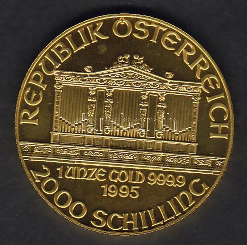 Ausztria 1995. 2000Sch "Wiener Filharmoniker" Au 31,1g T:1 https://www.darabanth.com/de/53-Fernauktion/53.0/Numismatik/~217/Ausztria-1995-2000Sch-Wiener-Filharmoniker-Au-31-1g-T1~II102799