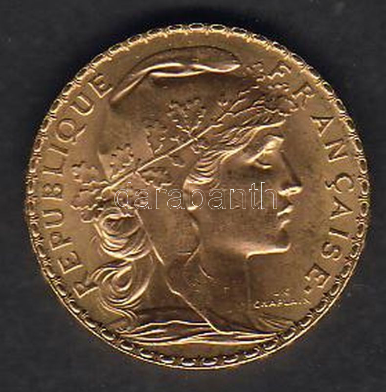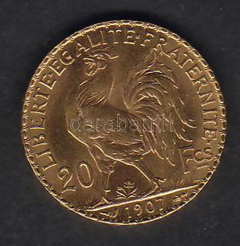 Franciaország 1907. 20Fr Au 6,4516g T:1 https://www.darabanth.com/de/53-Fernauktion/53.0/Numismatik/~217/Franciaorszag-1907-20Fr-Au-6-4516g-T1~II102792