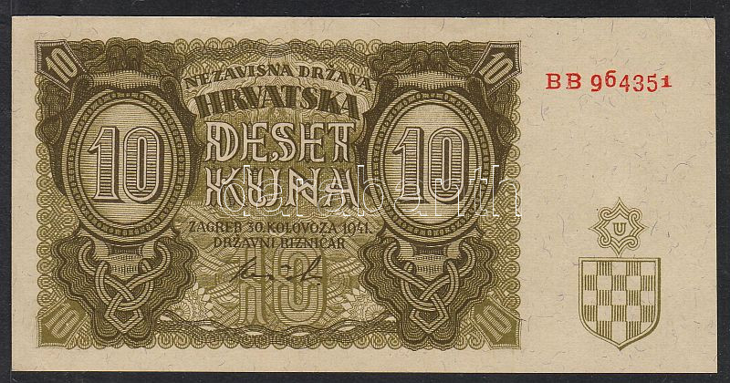 Horvátország 1941. 10K T:I https://www.darabanth.com/de/53-Fernauktion/53.0/Numismatik/~217/Horvatorszag-1941-10K-TI~II103105