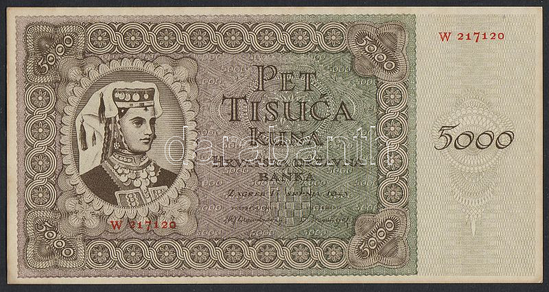 Horvátország 1943.09.01. 5000K T:I https://www.darabanth.com/de/53-Fernauktion/53.0/Numismatik/~217/Horvatorszag-19430901-5000K-TI~II103103