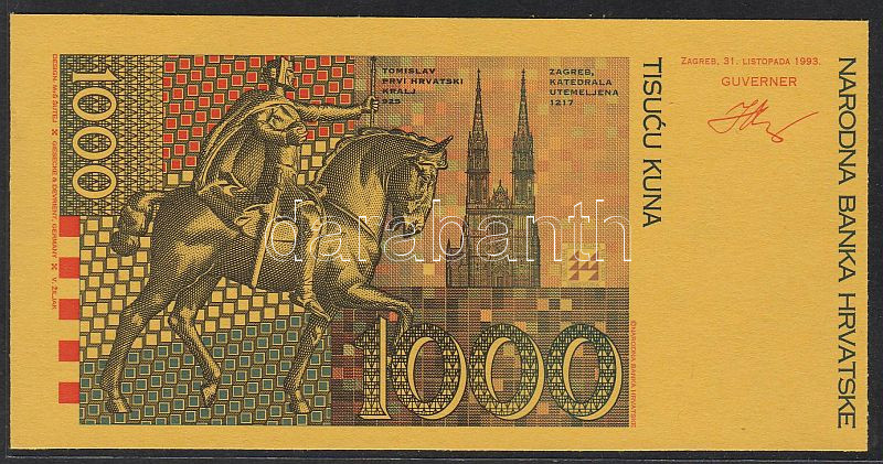 Horvátország 1993. 1000K hátoldali + rész előoldali fázisnyomat T:I https://www.darabanth.com/de/53-Fernauktion/53.0/Numismatik/~217/Horvatorszag-1993-1000K-hatoldali-plus-resz-elooldali-fazisnyomat-TI~II103745