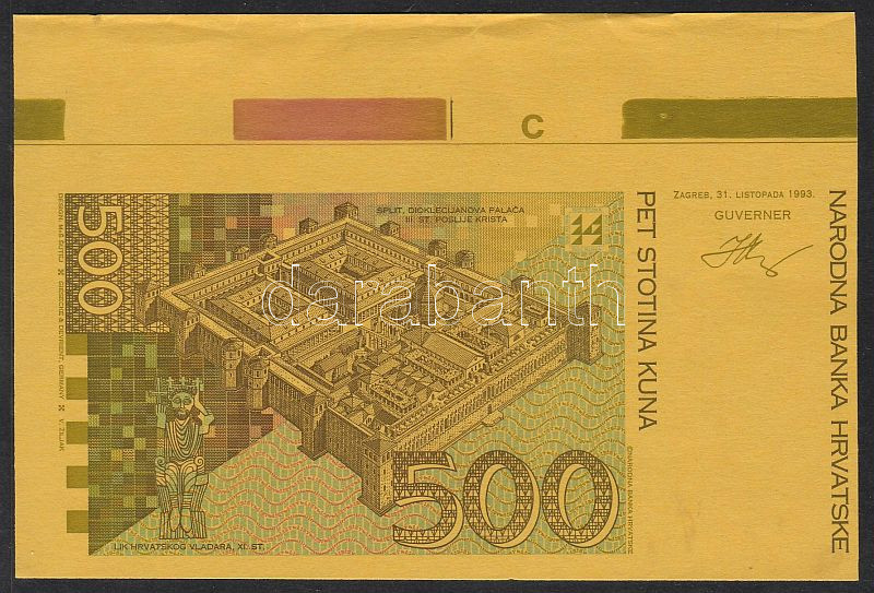 Beschreibung: Horvátország 1993. 500K hátoldali + rész előoldali fázisnyomat T:I