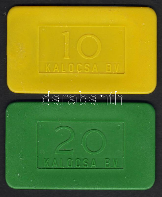 Beschreibung: Kalocsa/Börtönpénzek műanyag bónok 1996-tól 10Ft sárga (csak 1500db készült R!) + 20Ft zöld (csak 2000db készült R!) T:I