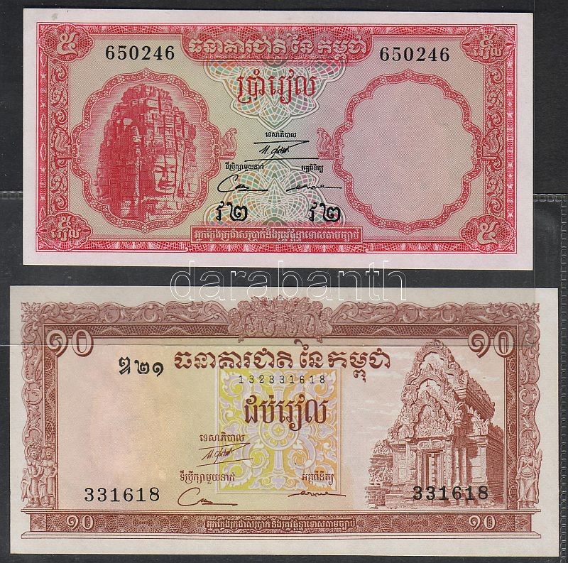 Kambodzsa/Királyság 1962-63. III.kiadás teljes sor variánsok nélkül 5R... https://www.darabanth.com/de/53-Fernauktion/53.0/Numismatik/~217/KambodzsaKiralysag-1962-63-IIIkiadas-teljes-sor-variansok-nelkul-5R-10R-100R-100R-mas-tip~II103669