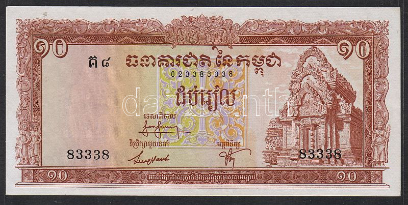 Kambodzsa/Királyság 1968. 10R ritkább szignatúra! T:I https://www.darabanth.com/de/53-Fernauktion/53.0/Numismatik/~217/KambodzsaKiralysag-1968-10R-ritkabb-szignatura-TI~II103664