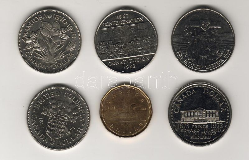 Kanada 1974-89. 1$ 5 klf emlékpénz + 1 forgalmi pénz T:1 https://www.darabanth.com/de/53-Fernauktion/53.0/Numismatik/~217/Kanada-1974-89-1USD-5-klf-emlekpenz-plus-1-forgalmi-penz-T1~II104105