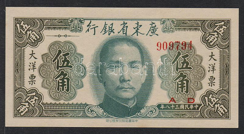Kína/ Kwangtung Provincial Bank 1949. 50c T:I https://www.darabanth.com/de/53-Fernauktion/53.0/Numismatik/~217/Kina-Kwangtung-Provincial-Bank-1949-50c-TI~II103115