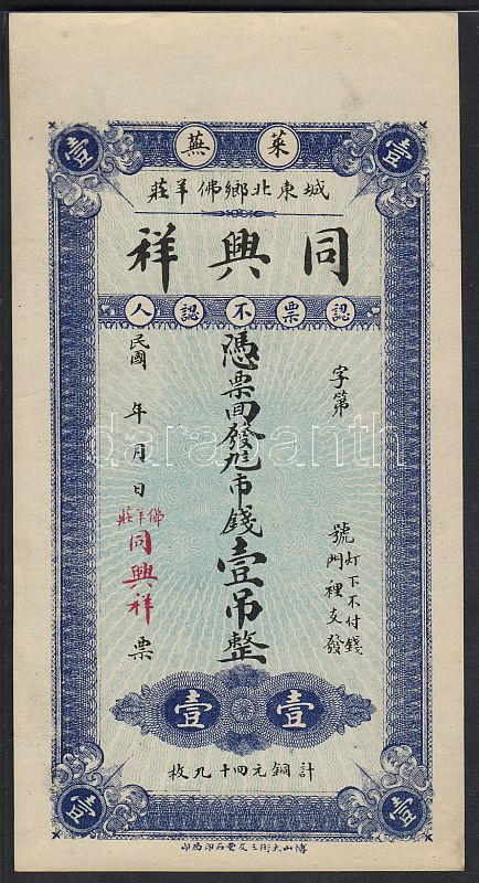 Beschreibung: Kína/Magánbanki kiadás 1920-as évek T:I-