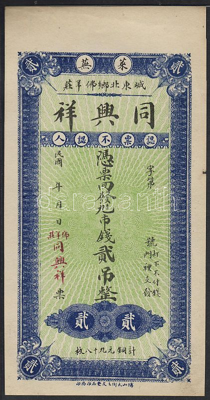 Beschreibung: Kína/Magánbanki kiadás 1920-as évek T:I-