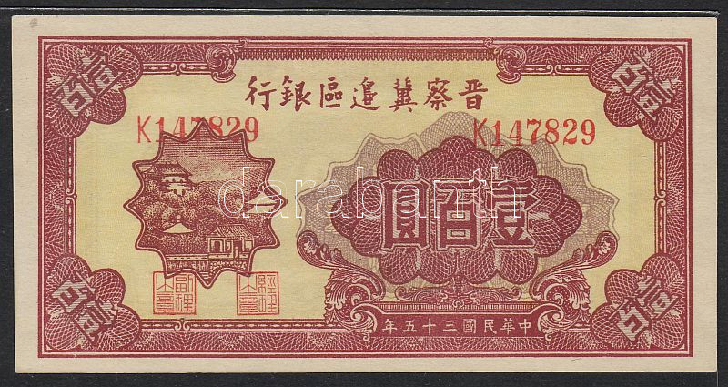 Kína/Provincial Bank/Bank of Shansi Chahar&Hopei 1946. 100Y T:I https://www.darabanth.com/de/53-Fernauktion/53.0/Numismatik/~217/KinaProvincial-BankBank-of-Shansi-ChaharHopei-1946-100Y-TI~II103731