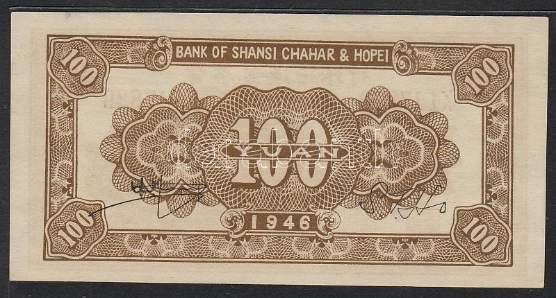 Beschreibung: Kína/Provincial Bank/Bank of Shansi Chahar&Hopei 1946. 100Y T:I