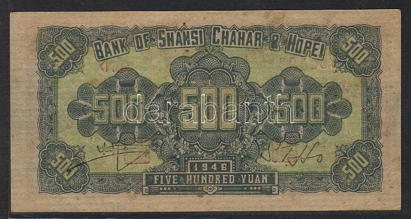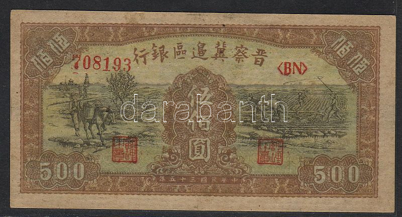 Kína/Provincial Bank/Bank of Shansi Chahar&Hopei 1946. 500Y T:I https://www.darabanth.com/de/53-Fernauktion/53.0/Numismatik/~217/KinaProvincial-BankBank-of-Shansi-ChaharHopei-1946-500Y-TI~II103728