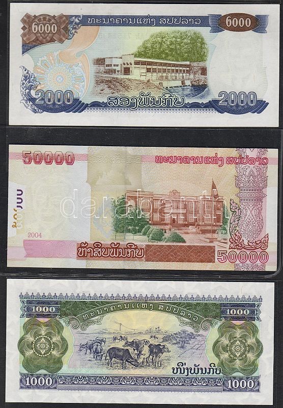Laosz 1998-2004. teljes sor 1000K,2000K,5000K,10.000K,20.000K.50.000K ... https://www.darabanth.com/de/53-Fernauktion/53.0/Numismatik/~217/Laosz-1998-2004-teljes-sor-1000K-2000K-5000K-10000K-20000K50000K-6-klf-bankjegy-TI~II103588