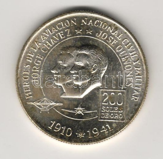 Peru 1974. 200S Ag "Repülés hősei" T:1 https://www.darabanth.com/de/53-Fernauktion/53.0/Numismatik/~217/Peru-1974-200S-Ag-Repules-hosei-T1~II104050
