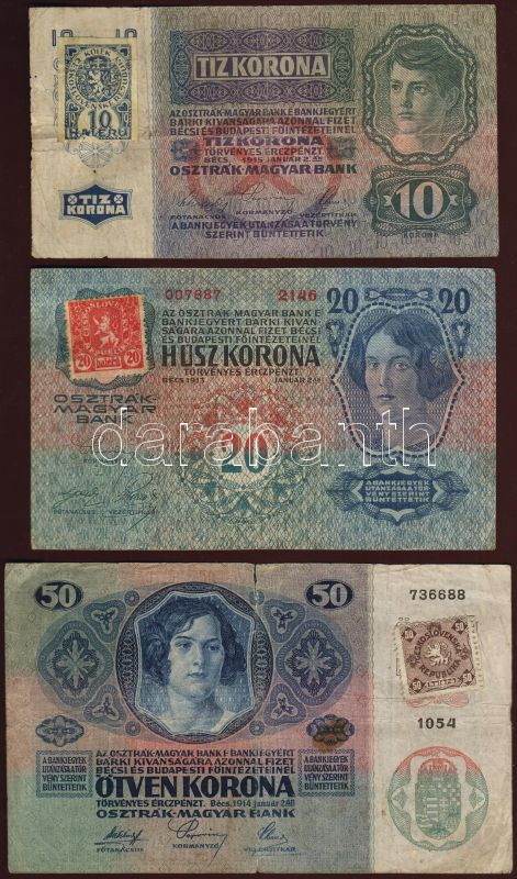 1912-1915. 10K,20K,50K,100K klf cseh ellenbélyegekkel T:II,III,IV https://www.darabanth.com/de/57-Fernauktion/57.0/Numismatik/~136/1912-1915-10K-20K-50K-100K-klf-cseh-ellenbelyegekkel-TII-III-IV~II115976