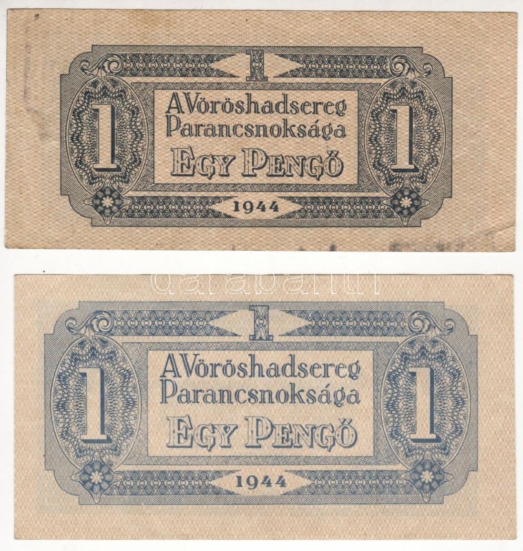 1944. 1P "V.H." sorszám nélkül, kis képméret, alapnyomat vízszintes + ... https://www.darabanth.com/de/57-Fernauktion/57.0/Numismatik/~136/1944-1P-VH-sorszam-nelkul-kis-kepmeret-alapnyomat-vizszintes-plus-nagy-kepmeret-alapnyo~II115997