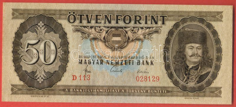 1965. 50Ft egyenetlenül nyomott sorozat és sorszámokkal T:I https://www.darabanth.com/de/57-Fernauktion/57.0/Numismatik/~136/1965-50Ft-egyenetlenul-nyomott-sorozat-es-sorszamokkal-TI~II115460