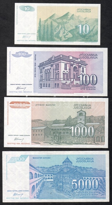Beschreibung: Jugoszlávia 1994. 10D,100D,1000D,5000D T:I, 50.000D T:II, 500.000D,10.000.000D T:I