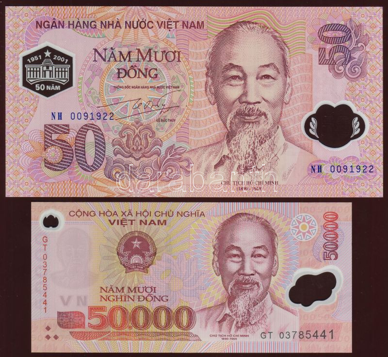 Vietnam 2001. 50D + 2003. 50.000D T:I https://www.darabanth.com/de/57-Fernauktion/57.0/Numismatik/~136/Vietnam-2001-50D-plus-2003-50000D-TI~II113692