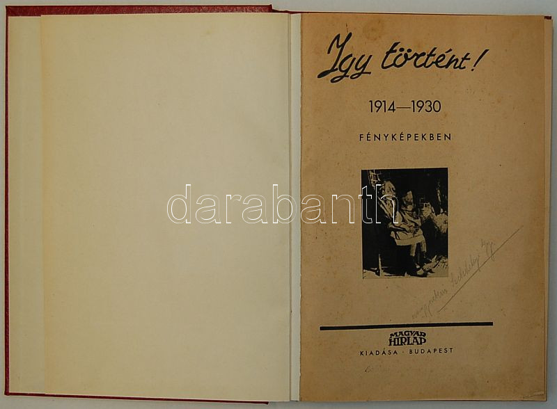 Így történt! 1914-1930 fényképekben. Magyar Hírlap kiadás 1931 újraköt... https://www.darabanth.com/de/58-Fernauktion/58.0/Andere-Sammelgebiete/~151/Igy-tortent-1914-1930-fenykepekben-Magyar-Hirlap-kiadas-1931-ujrakotve~II111663