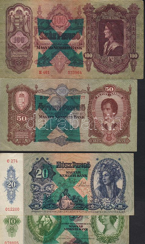 1930-41. 10P,20P,50P,100P nyilaskereszttel T:II https://www.darabanth.com/de/59-Fernauktion/59.0/Numismatik/~279/1930-41-10P-20P-50P-100P-nyilaskereszttel-TII~II119498