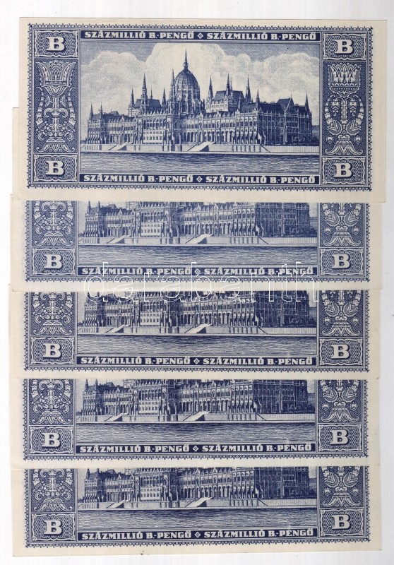 1946. 100.000.000B.-pengő "kék" (5x) T:I https://www.darabanth.com/de/59-Fernauktion/59.0/Numismatik/~279/1946-100000000B-pengo-kek-5x-TI~II119606
