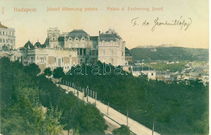 Budapest I. József főhg. palace https://www.darabanth.com/de/6-Gross-Auktion/6.1/Ansichtskarten-Ungarn/~1663/Budapest-I-Jozsef-fohg-palace~II131710