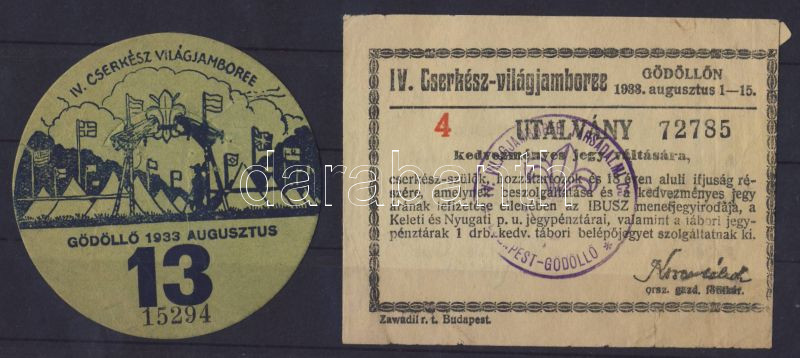 Beschreibung: 1933 Kedvezményes jegyvásárlási utalvány és kitűző / reduced rate voucher and badge