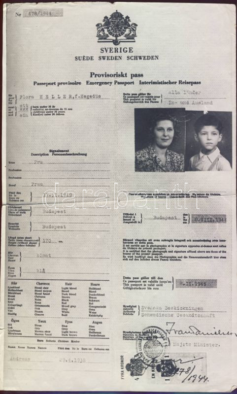 1944 Svéd útlevél hitelesített másolat / Swedsish emergency passport a... https://www.darabanth.com/de/6-Gross-Auktion/6.1/Kunst-Dokumente/~1660/1944-Sved-utlevel-hitelesitett-masolat-Swedsish-emergency-passport-attested-copy~II138930