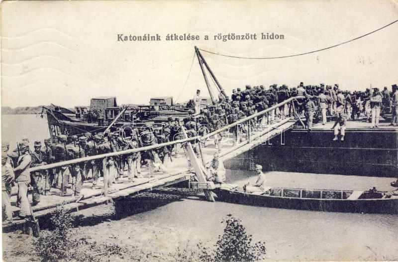 K.u.K. soldiers crossing floating bridge https://www.darabanth.com/de/6-Gross-Auktion/6.1/Thematik-und-Kunstlerkarten/~1626/KuK-soldiers-crossing-floating-bridge~II137719