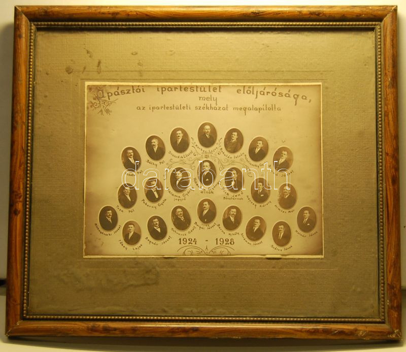 Beschreibung: 1924 A pásztói ipartestület tagjai tabló fotó keretben 24x28 cm